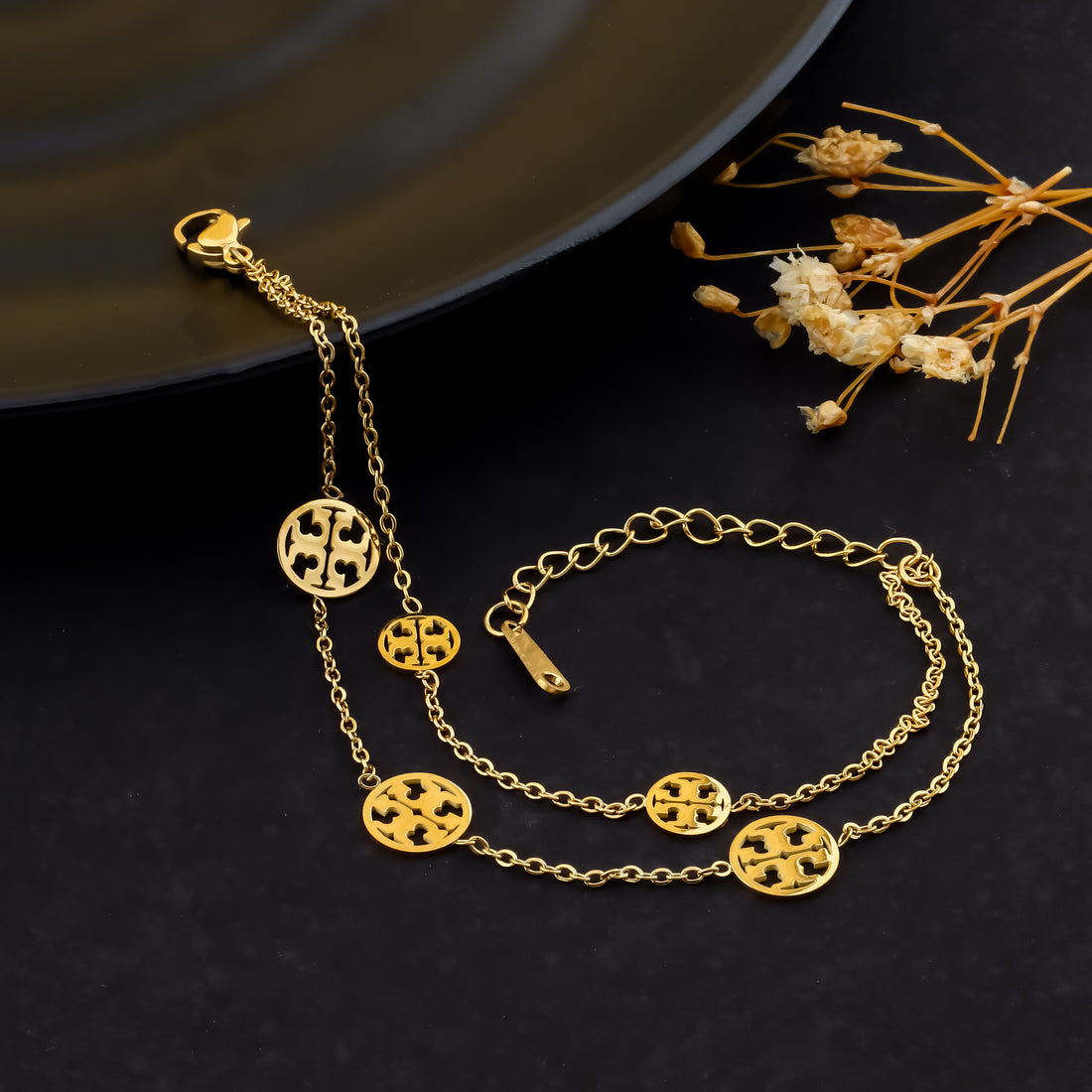 Color: GoldBracelet Size: Free SizeMaterial: Stainless SteelLength : 7 cmSpecification: Anti-tarnish & Premium Quality how...