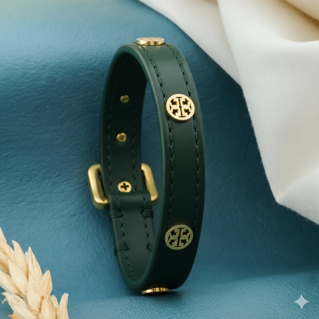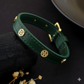 The Leather Stud Cuff (Gold - Green)