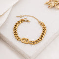 Make a bold statement with The Luxe Link Bracelet, a piece that combines urban chic with timeless elegance. This bracelet features a sophisticated curb chain design, meticulously crafted in a brilliant high-polish gold-tone finish. At its center lies a sleek, minimalist oval charm that adds a touch of modern artistry to the classic link style.